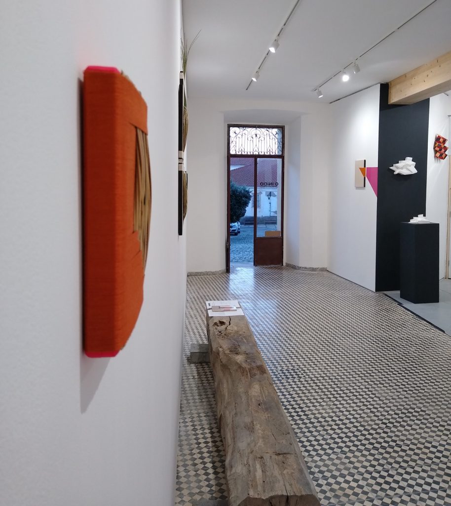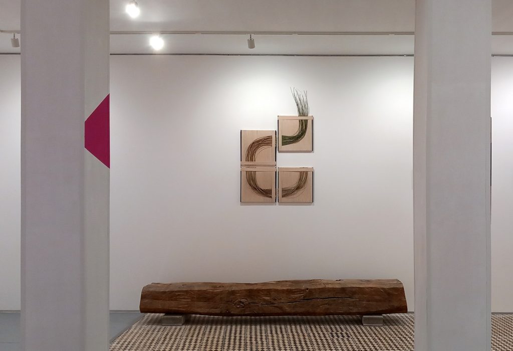 Sandra Bourquin develops her own formal language in her abstract woven pictures. In her reinterpretation of traditional craftsmanship – weaving is one of the oldest textile techniques – she expands the two-dimensional surface by further layers, which transform the works into reliefs with a three-dimensional, sometimes sculptural quality. Her pieces, monochrome or vibrantly coloured, move between geometric works and curved shapes that dissolve the strictness of form. In her choice of materials and their materiality, the artist breaks away from the classic canon and uses blades of grass as well as the finest yarns. As the plant material withers, the compositions undergo a natural process of change. This slow decay of the grass adds an organic level to the works that follows its own laws. The rural surroundings of the Alentejo with its natural materials, colours and incomparable light serve as a source of inspiration for Sandra Bourquin.